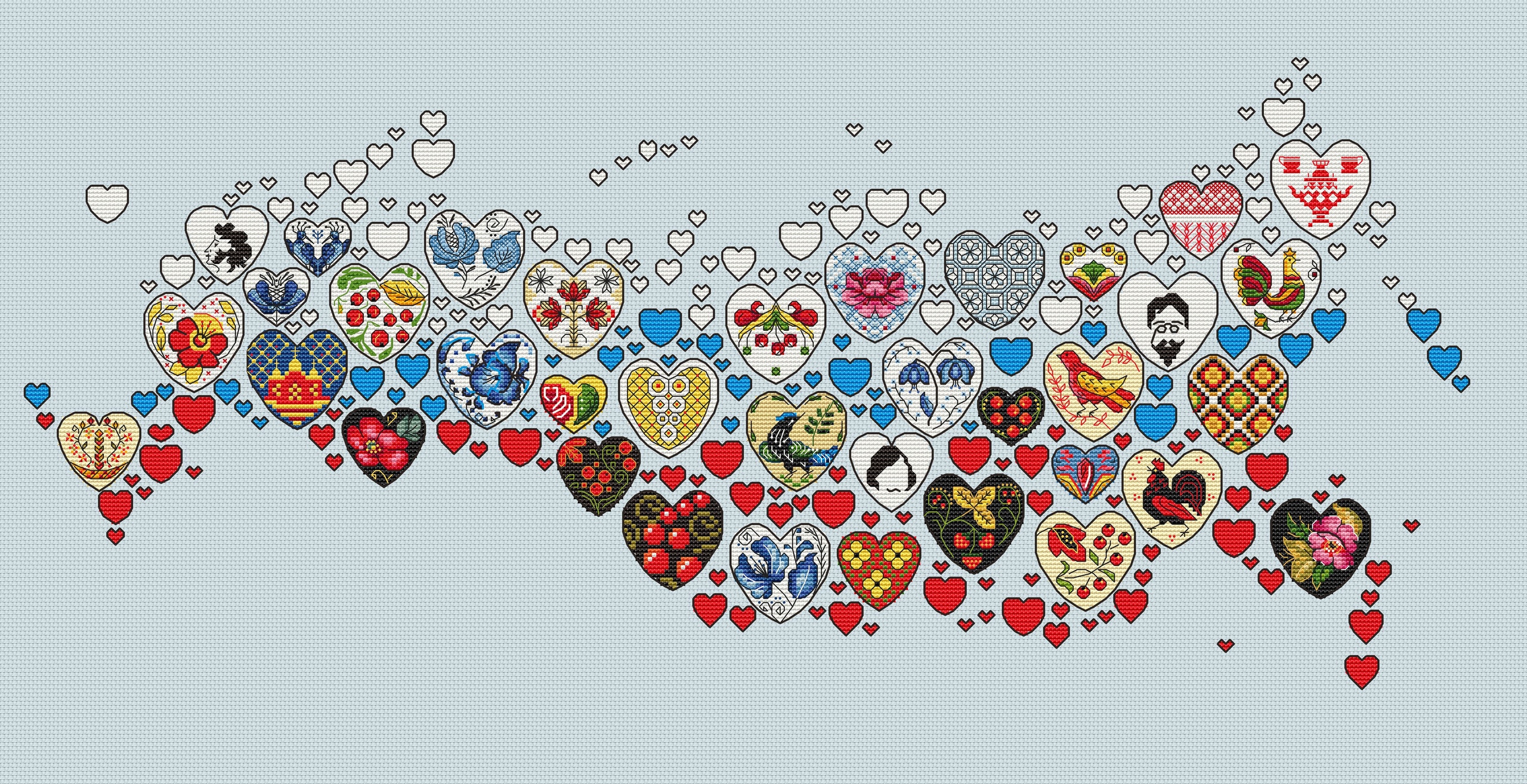 Used stitches: full cross, 3/4 cross, backstitch, french knots