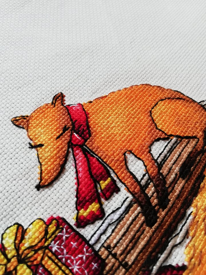 Roguish smailing fox and gloomy black cat are perfect pattern for positive vibes. Change your apparent bad luck for happiness.